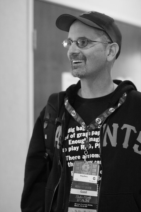 Douglas "Uncle Bullhorn" Berry passed away September 30, 2023, from interstitial lung disease complicated by COVID-19. He was a lifelong resident of the SF Bay Area, and had a love affair with the Traveller RPG universe since bringing home the original Little Black Books from a Pacificon in the late 70s. He had several publication credits in the universe to his name, starting with At Close Quarters from British Isles Traveller Support (co-written with James Lindsay) and most notably including GURPS: Traveller: Ground Forces. He also co-hosted several Travellers' Aid Society parties at BayCon in the early 2000s.